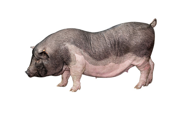 Lantang pigs, also known as Furong pigs and iron-tailed pigs, are named after their central production area in Lantang Town, Zijin County, Guangdong Province. They are a typical South China small-eared black-backed pig breed.